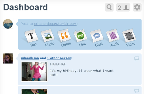 Kısaca Tumblelogger olduğunuz anda sistemin size sunacaklarını karışık bir şekilde sıralamak istiyorum. Dashboard sistemiyle çalışan sistemde çok fazla zaman kaybetmeyeceksiniz, arkadaşlarınızı ve diğer Tumblelogger'ları takip etmeniz çok kolay olacak; istediğiniz zaman takip listenize yeni mikro-blogger'lar ekleyebilecek ve kimin sizi takip ettiğini göreceksiniz ve bunları yaparken; "Re-Blog" tuşuyla tanışacak ve gördüğünüz içeriği tekrar kendi blog'unuzda paylaşacaksınız.