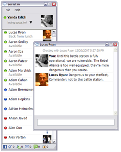 MSN Messenger, GTalk ve Yahoo Messenger kendini bir an önce yenilememek için ısrar ederken; önümüzdeki yılların en çok kullanılan anlık iletişim uygulaması Social.im olacağa benziyor. Tabii ki büyük oyuncular hızlı ve doğru bir şekilde hareket edemez ya da Social.im onlar tarafından satın alınmazsa!