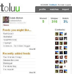 Toluu - OPML ile XML besleme listenizi(RSS'lerinizi) paylaşabileceğiniz bir sosyal ağ. Toluu'nun kişileri takip etme özelliği ile yepyeni bloglar keşfederken aynı zamanda Matches özelliği ile takip ettiğiniz kişilerle ortak blog zevklerinizi bulabiliyor hatta arkadaşlarınıza bloglar tavsiye edebilmeniz için tavsiye özelliği eklenmiş. Google Reader benzeri uygulamalarda denenen tüm paylaşım modellerini derleyen yenilikçi model RSS alışkanlığınızı düzenlerken, RSS okumayı da motive ediyor.