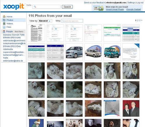 MS Outlook eklentisi olan Xobni'den sonra email servisleri üstüne kurgulanan bir başka çalışma da Xoopit. Mail kutunuzda bugüne kadar geçen trafiğinizdeki fotoğraf, video ve diğer dosya türlerini ayrıştırarak sade bir sayfada size sunuyor. Bunun yanında bu dosyaları mail, Facebook ve blog'larda paylaşabilmeniz için imkan sunuyor. (Şimdilik sadece Gmail ile birlikte çalışıyor sistem)