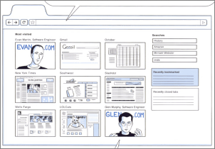 Google Chrome'un varsayılan ekranında ise en çok ziyaret edilen sitelerin küçük ekran görüntüleri, sağ kolonda ise aranan anahtar kelimeler, en son favorilere eklenen siteler gibi bilgiler yer alacakmış.