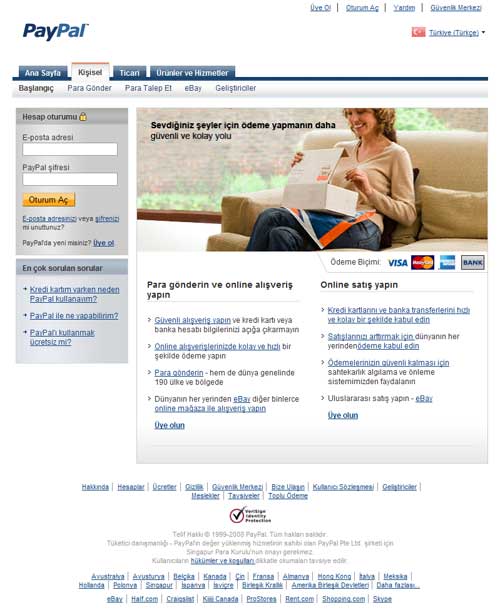 PayPal artık Türkçe bir arayüze sahip ve bir süredir Türk kredi kartlarına para aktarımı yapıyor.
