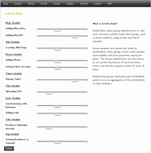 Aslında ActivityRank grup yöneticilerinin işini kolaylaştırmaya yarayan bir özellik, grup yöneticisi kendi belirlediği aktiflik kriterlerine göre üyeleri değerlendiriyor ve belli bir ActivityRank değerini geçen üyelere özel yetkiler, moderasyon özellikleri verebiliyor. Bu şekilde üyelerin gruplar içinde daha çok paylaşım yapması teşvik ediliyor olacak.