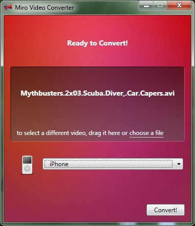 Miro’nun geliştiricilerinin Miro 3.0’ı duyurmasıyla birlikte, Miro Video Converter adlı yeni yazılım da kullanıma sunuldu. Miro Video Converter, herhangi bir video dosyasını MP4, Theora veya mobil aygıtınızla (iPhone, iPod, Android, PSP) uyumlu formata dönüştürmeye yarıyor. Gördüğümüz kadarıyla MVC, bulabileceğiniz en basit video dönüştürücü; çünkü hiçbir özelliği yok!