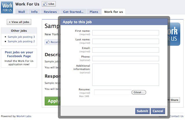Şirketlerin sosyal ağlarda temsil edilmesinin en güzel uygulama alanlarında biri olan Facebook'ta, şirket içinde açılan yeni iş pozisyonlarını bu şekilde paylaşmaktan daha doğru bir model olmayacaktır. Bu anlamda Work For Us doldurulması gereken önemli bir alanda başarılı bir çözüm olarak karşımıza çıkıyor.