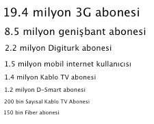 - Kablo TV kullanıcı sayısı ise 1.4 milyonu geçti, Sayısal Kablo TV ise 200 bini geçti.
