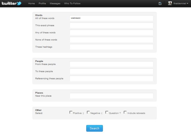 Twitter arama motoru olarak kullanılan search.twitter.com adresi farklı girişler için istenen sonucu sunmayı hedefliyordu. Geriye dönük çok başarılı çalışmayan servisin twitter aramalarındaki yenilikleri artık Twitter.com/search-advanced adresinde olacak.
