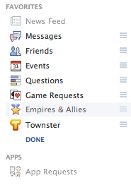 Facebook, sol menüdeki yerimlerinde de güncelleme yaptı ve bu bölümde yer alacak Favoriler başlığı altınaki beğendiğiniz oyunları sıralama imkanı getirdi. Bu yenilik de kısa süre içinde kullanılabilir olacak.