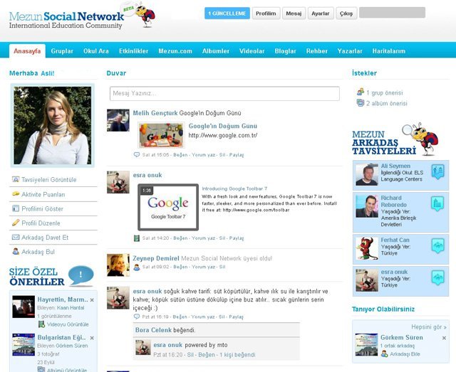 Mezun Social Network'ün en ilgi çekici özelliklerinden biri de sunduğu "en iyi eşleştirme" özelliği sayesinde üyelere okul ve arkadaş tavsiyelerinin yapılıyor olması.