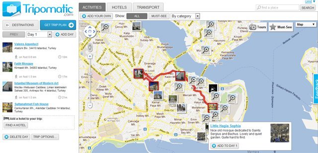 Ücretsiz bir servis olan Tripomatic ile gezmeyi planladığınız şehri seçtikten sonra Google haritası üzerinden şehrin veya ülkenin görülmesi gereken önemli yerlerini birer fotoğraf ile gösteriyor. Her fotoğrafın üzerine geldiğinizde kısa bir bilgi ve yolculuk adımlarınıza söz konusu yeri eklemek için bir bağlantı buluyorsunuz. Böylece görmeyi arzu ettiğiniz her yeri günlük planınız içerisinde yerleştirebiliyorsunuz. Planınızın gün sayısını arttırarak gezeceğiniz mekanları için farklı günlere ayırmak da mümkün.