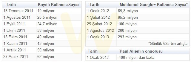 Aşağıda paylaştığımız veriler, Google Plus'ın bugün 62 milyon kullanıcıya sahip olduğunu gösteriyor. Her gün 625.000 yeni kullanıcının Google Plus'a katıldığını söyleyen Allen, bu gidişle Google Plus'ın 2012 sonunda 300 milyon kullanıcı sınırına ulaşabileceğini söylüyor. Artan kullanıcı katılımının ise 2012 sonunda 400 milyondan fazla kullanıcıyı Google Plus'a çekebileceğini iddia ediyor. (Google'ın Ekim ayında 40 Milyon kullanıcıyı geçtiğini Larry Page açıklamıştı.)