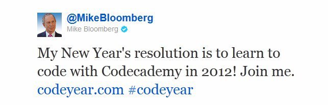 2012 yılı New York merkezli bir girişim olan Codeacademy tarafından Kod Yılı ilan edildi. Code Year sitesine açıldığı Pazar gününden bu yana 180 binden fazla kişi kodlama öğrenmeye karar verdiğini dile getirdi. Bunların arasında New York Belediye Başkanı Michael Bloomberg de bulunuyor.