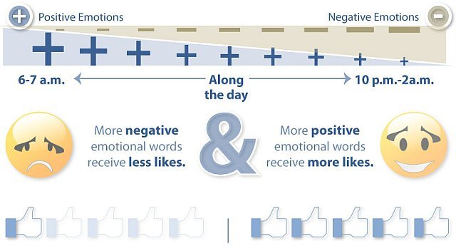 Bir diğer inceleme ise 'olumlu' güncellemelerin üzerine. Facebook üzerinden duygusal durum araştırması yapan araştırmaya göre olumlu güncellemeler daha çok 'like' edilirken (beğenilirken), olumsuzlar daha çok yorum alıyor (aslında sürpriz bir sonuç değil). Arkadaşı fazla olan kişiler daha uzun iletiler yazmaya meyilli ve daha az duygusal.