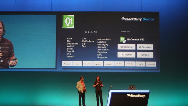 Sounders, Nokia'da QT yöneticisi Lars Knoll'u sahneye davet etti. Nokia tarafından satın alınan QT, 1994'ten bu yana geliştirilen bir uygulama geliştirme araç seti ve Knoll, QT ile C++ API'lerinin nasıl kullanılabileceğinden bahsetti. Yeni geliştirme modelini anlattıktan sonra, QT tabanlı hem 2 boyutlu hem de 3 boyutlu oynanabilen bir oyunu Saunders ile Playbook üzerinde oynadı.