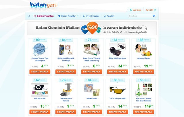 Bir yıla yakın bir çalışmanın ardından, Mart 2011’de beta olarak hayata geçen ve ilk siparişini 28 Mart’ta alan ve kendisini “günlük fırsat sitesi” olarak tanımlayan BatanGemi.com ciddi bir tanıtım bütçesi ayırmadan her ay cirosunu yaklaşık yüzde 15 civarında büyüten ve içinde bulunduğumuz Mart ayı sonunda aylık 600 bin TL’lik satışa ulaşmayı hedefleyen, Türk e-ticaret sektörü içindeki ilginç örneklerden biri.