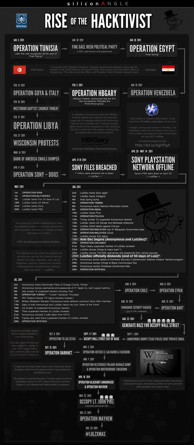 2011’de hactivism nasıl yükseldiği ve ne gibi sonuçlara yol açtığına yönelik Silicon Angle tarafından Şubat ayında hazırlanan bir infografiği de aşağıda inceleyebilirsiniz.