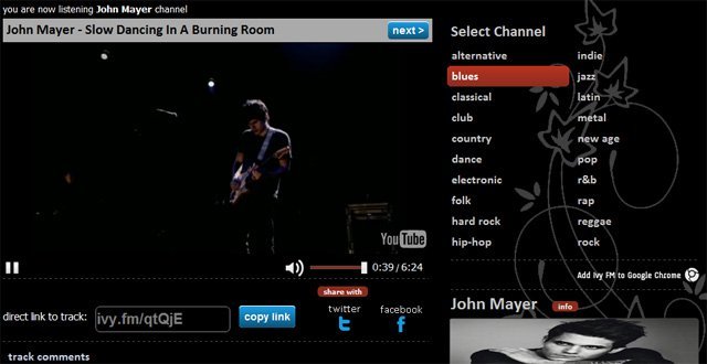 Fakat müzik keşfi Ivy.fm’in sadece bir yönü. Her şarkı Youtube API’si üzerinden video olarak alınıyor ve yayınlanıyor. Yani şarkılar dilerseniz arka plandaki tarayıcınızdan bir online radyo gibi çalabilir veya tercih ederseniz videolarını da izleyebilirsiniz. Bu sırada o anda parçası çalınmakta olan sanatçılara dair bilgiler ve en önemli albümlerine dair veriler de last.fm üzerinden alınarak Ivy.fm’de sunuluyor.
