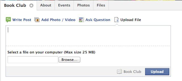 Şu an için sadece sınırlı sayıda Facebook grubunda kullanıma açık olan dosya paylaşım özelliği sadece birkaç gün içerisinde Facebook gruplarını kullanan 380 milyon kişiye birden sunulmuş olacak. Yüklenebilecek dosyaların limiti 25 MB ile sınırlı ve müzik dosyaları ile .exe uzantılı dosyalara izin verilmeyecek.