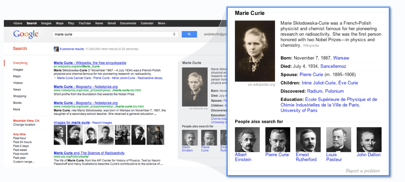 Google, blogları üzerinden yaptığı bir açıklama ile Knowledge Graph'ı duyurdu. Google'ın vurgu yaptığı bir konu, aramaların aynı zamanda bir keşif olması. Knowledge Graph ile gelecek en büyük yeniliklerden birisi ise bu keşifi daha basit ve hızlı yapmanıza yardım edecek bir yapıda düzenlenmiş olması.