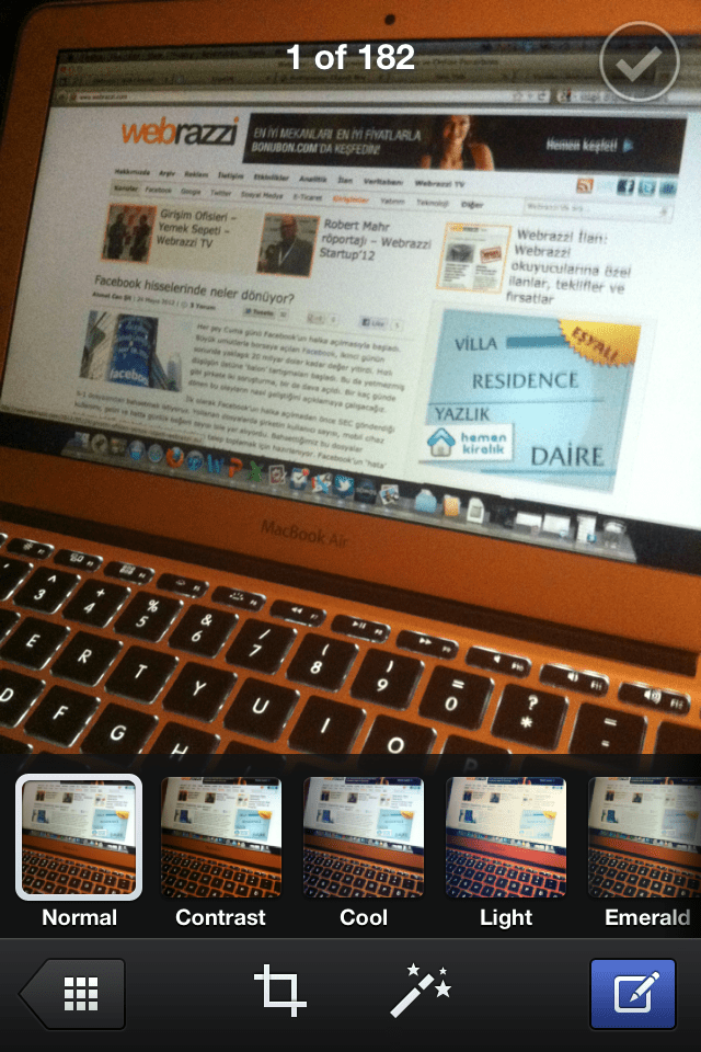 Facebook'un yeni fotoğraf düzenleme ve paylaşım uygulaması App Store'daki yerini aldı. Ücretsiz olarak sunulan uygulama, iPhone ve iPod touch'larda çalışıyor. Toplamda 14 filtrenin bulunduğu Facebook Camera uygulamasından ilk ekran görüntülerini haberimizin devamında görebilirsiniz.