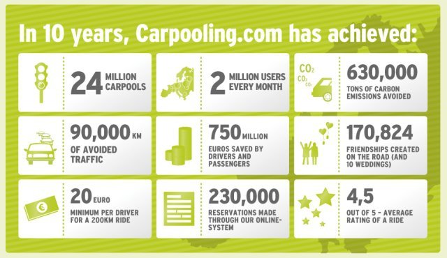 Dünyaca ünlü otomobil üreticisi Daimler'den 8 milyon Euro (17.7 milyon TL) destek almayı başaran Carpooling, aynı yöne gidecek kişilerin birlikte seyahat ederek masrafları paylaşmasına dayanıyor. Arabasında boş yer olan kişiler sitede yer açıyor ve aynı yöne gidecek kişiler de yer ayırtarak uygun olması halinde birlikte seyahat ediyor.