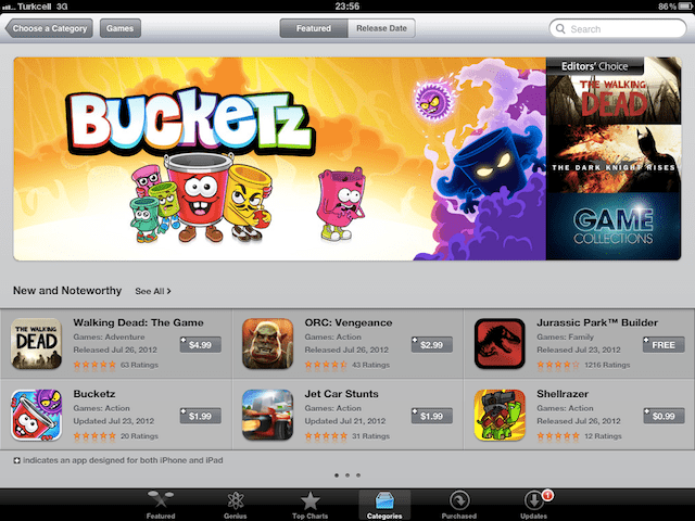 Dün detaylı olarak incelediğimiz İstanbul merkezli oyun şirketi Picnic Hippo'nun oyunu Bucketz bugün yayına girdiği App Store'da hem genel hem de oyun kategorilerinde "featured" uygulamaların arasındaki yerini aldı.