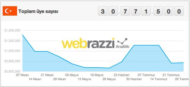 Türkiye, internet kullanıcılarının sosyal ağlardaki aktifliğiyle yakından tanınıyor. Webrazzi Analitik verisine göre kullanıcı sayısı bazında Facebook dünya sıralamasında yedinci olan Türkiye, Twitter'da da iddialı olmaya başlıyor. Temmuz ayı itibariyle Türkiye Twitter'da 11. sırada.