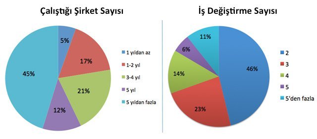 Ankete katılan yaklaşık bin kişinin yüzde 46.2'si çalışma hayatları boyunca 2 kez iş değiştirmiş durumda. Geriye kalan dilimin yüzde 23.3'üyse 3, yüzde 13.9'uysa 4 kez değiştirmiş durumda. 5'ten fazla iş değiştiren yazılımcıların oranıysa yüzde 10.6.
