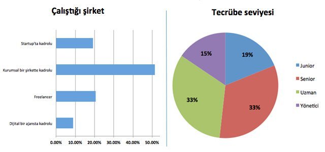 Sektörde çalışanların durumundaysa kurumsal bir şirkette kadrolu olarak çalışanlar öne çıkıyor. Yüzde 51.4 oranla kurumsal bir şirkette kadrolu olarak çalışanlar birinci sırada yer alırken, Freelance olarak çalışanların sayısıysa yüzde 20.5. Freelancer olarak çalışanlarıysa yüzde 19.1 ile startup çalışanları, yüzde 8.8 ile dijital ajans çalışanları takip ediyor.