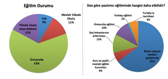 Her ne kadar IT sektörü çalışanlarının bir çoğu, üniversite, yüksek lisans veya doktora diplomasına sahip olsa da geliştiricilikte kişisel çabayla kendini geliştirmenin önemli olduğunu düşünüyor. Katılımcıların yüzde 64.6'sı kişisel çabayla gelişime önem verirken, yüzde 11.8'i staj imkanlarının önemli olduğunu söylüyor. Öte yandan ankete katılanların yüzde 74.1'i IT sektöründe istihdam açığı olduğuna inanıyor.