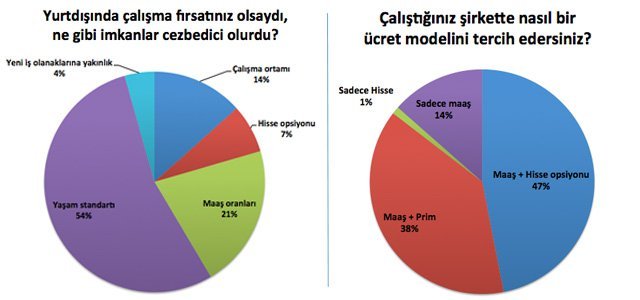 Çağlar Erol'un yazısına en çok gelen yorumlardan biri de yurt dışında çalışma ortamıydı. Ankete katılanların yüzde 76.6'sı Türkiye yerine yurt dışında çalışmayı tercih ediyor. Geriye kalan yüzde 23.3'lük kısımsa Türkiye'de çalışmaktan memnun. Yurt dışındaki yaşam standartlarını yüksek olması Türkiye'deki IT sektöründe çalışanları cezbediyor. Yurt dışındaki yaşam standartlarından dolayı Türkiye'den ayrılmak isteyen çalışanların oranı yüzde 54.1. İkinci sıradaysa yüzde 20.9 ile yurt dışındaki maaş oranları yerli yazılımcıları etkiliyor. Yüzde 13.3 ile çalışma ortamı, yüzde 7.1 ile hisse opsiyonu ve yüzde 4.3 ile yeni iş olanaklarına yakınlık sonuçlarda yer alıyor.