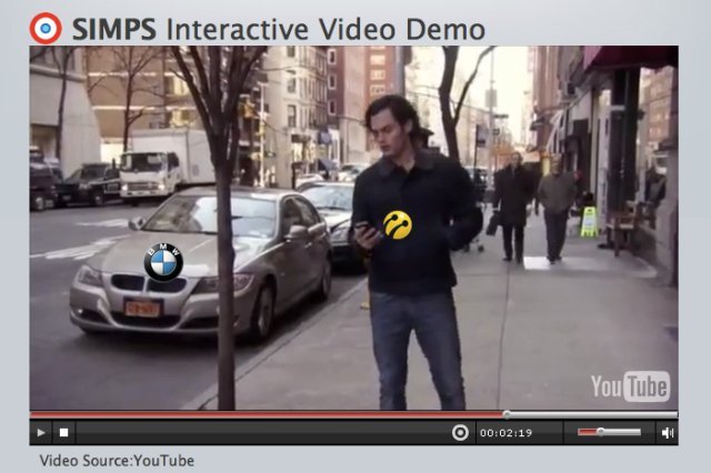Fikirden üretime 2 ay gibi bir sürede geliştirilen SIMPS ise şuradaki test videosunda veya yukarıdaki resimde gördüğünüz gibi marka logolarını vb. bir simgeyi videoya işliyor ve kullanıcılar bu bağlantıya tıkladığında bir reklam videosuna, pop-up reklama veya farklı bilgilere yönlendiriyor. SIMPS, bir nevi televizyonlardaki ürün yerleştirme işini online videolara taşımış oluyor.