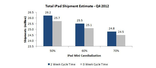 Tüm bu veriler ışığında eğer satılan iPad Mini’ler iPad satışlarına yüzde 70 oranında etkide bulunursa son çeyrekte ulaşılacak satış rakamları 24,5 milyonda kalacak. Eğer etki yüzde 50 gibi daha düşük bir oranda gerçekleşirse toplam iPad satışlarının 26,2 milyon adede ulaşması mümkün.