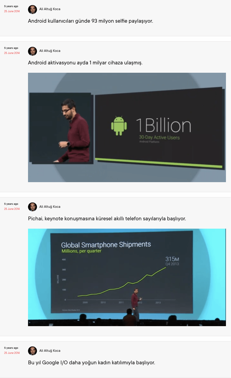 Özellikle Google Glass ve Nest'le ilgili çok sayıda yeniliğin duyurulması beklenen etkinlikte nelerin olacağını detaylı incelemek isteyenler Google I/O 2014 geliştirici konferasından beklentiler yazımıza göz atabilirler.