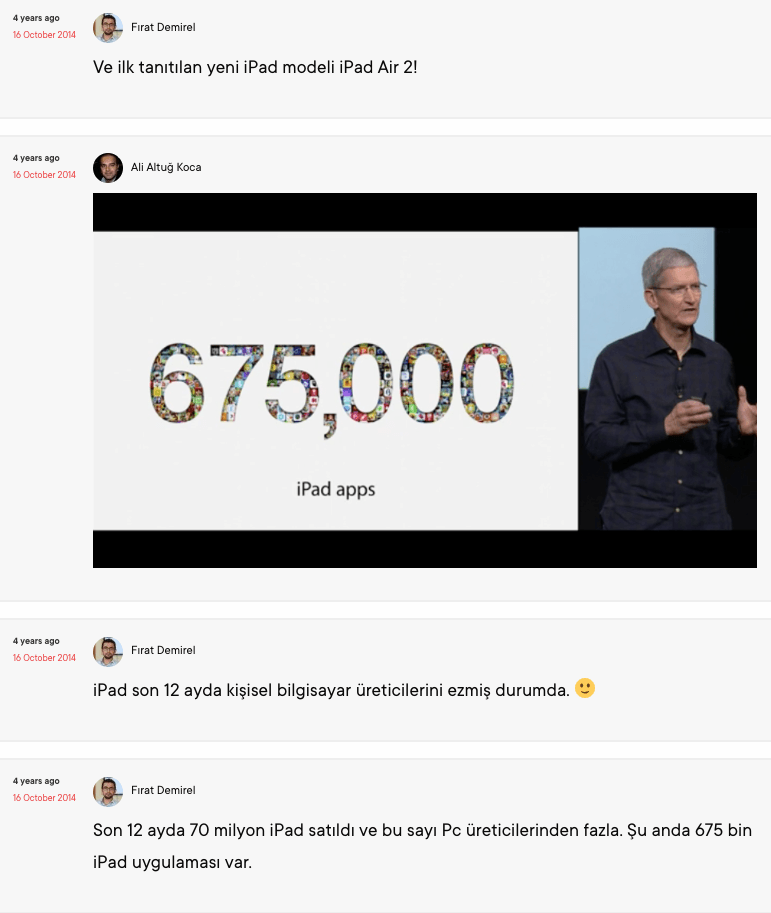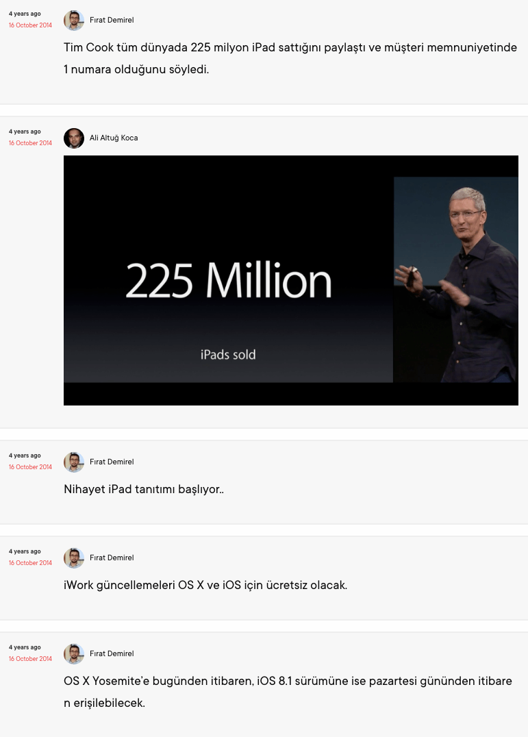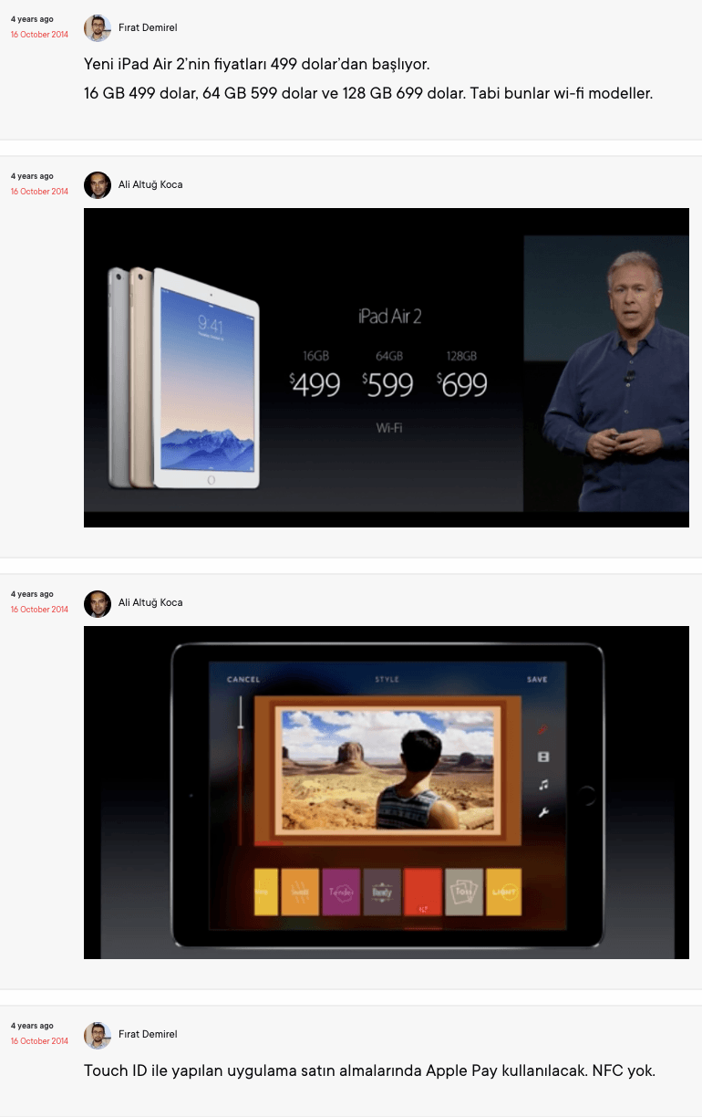 Apple bugün iPad Air 2 ve iPad mini 3'ün görüntülerinin sızmasıyla birlikte bugün belki de en az heyecan duyulan etkinliklerinden birini yapacak. iPad yönüyle heyecanın sönmesine karşılık Apple Pay ile ilgili detayları açıklaması beklenen Apple'ın saat 20:00'da başlayacak etkinliğinde canlı bloglama ile sizlere detayları anlık olarak aktaracağız.