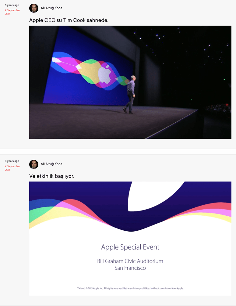Canlı bloglamayla birlikte bu geceki tüm haberleri Apple 2015 etiketinden takip edebilirsiniz.