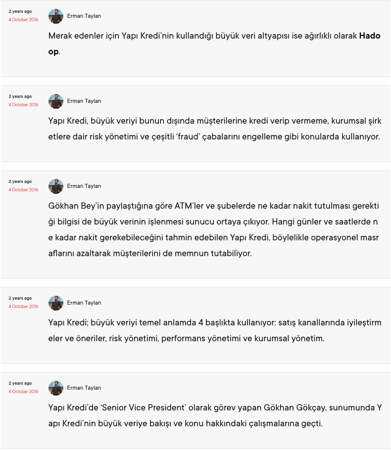 10:10 – 10:30: Yapı Kredi’nin büyük veri çalışmaları hakkındaki sunumu ve söyleşi - Gökhan Gökçay (Yapı Kredi)