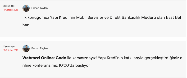 Canlı yayınımız sona erdi, hemen yukarıdan Webrazzi Online: Code‘u ‘banttan’ izleyebilirsiniz. Konferans notları ise yazının sonunda sizleri bekliyor.