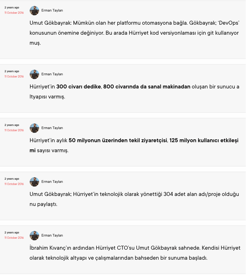 10:40 - 11:00: Hürriyet'e teknik bakış sunumu - Umut Gökbayrak - (Hürriyet CTO'su)