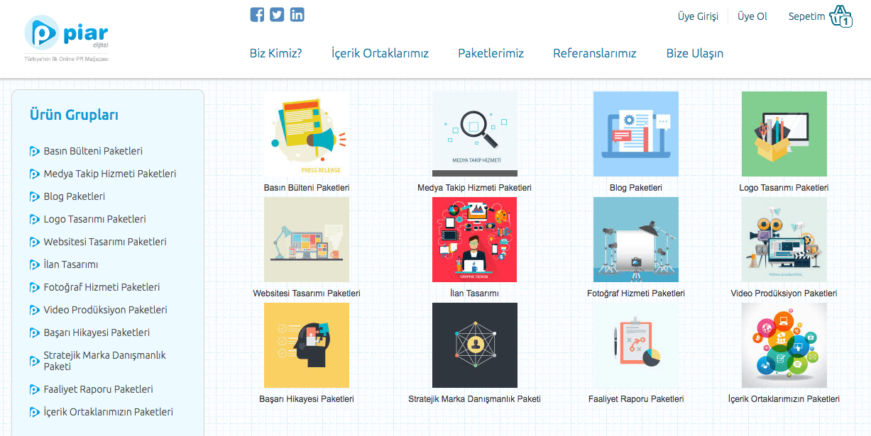 Piar Dijital'in mağazasında basın bülteni yazımından kurumsal kimlik tasarımına, fotoğraf çekiminden ilan tasarımına kadar farklı hizmetleri bulmak mümkün. Selin Batı Oran, girişimlerin ve KOBİ'lerin kendilerini tüm iletişim kanallarında etkili bir şekilde temsil etmesi gerektiğini söylüyor ve isteyen kurumların kendi paketlerini oluşturabileceğini ekliyor. İhtiyaçlarına dönük hizmetleri seçen müşteriler, tahmin edebileceğiniz gibi kredi kartıyla kolayca ödeme yapabiliyor.