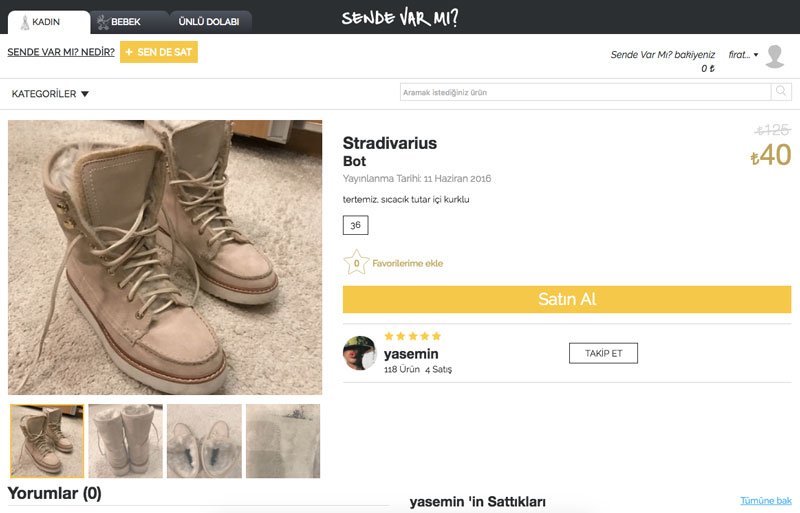 Eğer ikinci el kıyafet/aksesuar satmayı düşünüyorsanız Sendevarmi.com'a göz atıp yorumlarınızı paylaşabilirsiniz.
