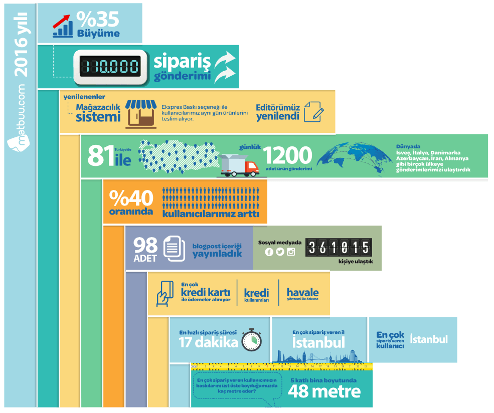 2016'da yüzde 35 büyüyen Matbuu.com, Türkiye'nin 81 ilinin yanısıra İsveç, İtalya, Danimarka ve daha bir çok ülkeye gönderim yapmış. Android uygulamasını da yayınlayan Matbuu.com'un kullanıcı sayısı yüzde 40 oranında artmış ve en çok sipariş veren il tahmin edeceğiniz gibi İstanbul olmuş.