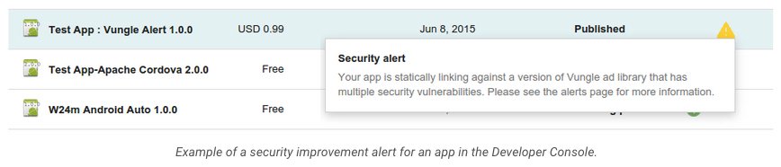 Android uygulamalarının güvenlik açıkları hem kullanıcılarını hem de Google'ı rahatsız eden bir durum. Neyse ki Google Play App Security Improvement (ASI - Google Play Uygulama Güvenliği İyileştirmeleri) adında bir program var ve bu program yeni paylaşımlarla Android uygulama geliştiricilerini uyarmaya/yönlendirmeye devam ediyor.
