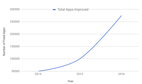 Android Güvenlik Programı Yöneticisi Rahul Mishra'nın paylaştığı bilgilere göre App Security Improvement (ASI) programı Nisan 2016'da başlatılmış ve 100 bin uygulamanın güvenlik sorunlarının çözümüne yardımcı olmuş. Android'in yazılım güvenliği uzmanları daha sonra tespit edilen 11 güvenlik sorununu da geliştiricilerle paylaşarak, bugüne kadar 90 bin geliştiricinin 250 bin uygulamayı daha güvenli hala getirmesini sağlamış.