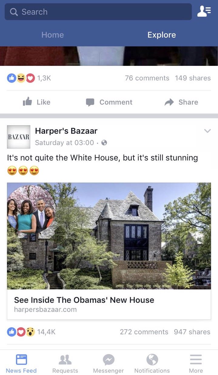 Facebook'un iOS uygulamasında bir süredir test ettiği Keşfet (Explore) sekmesine, uygulamanın en alt satırında Ana Sayfa butonuyla ulaşıyorsunuz. Burada normal koşullar altında yalnızca haber akışınızı gösteren Facebook, eğer özelliği devreye alırsa, Keşfet adında yeni bir sekme ekliyor. Keşfet sekmesi, Facebook'ta beğendiğiniz içerik ve sayfaları baz alarak size yeni paylaşımları gösteriyor. Özellik, Facebook'un algoritmaları sayesinde kaçırdığınız ya da Facebook'ta henüz keşfetmediğiniz içeriklere erişmenizi sağlıyor.Öneriler Instagram, Pinterest, Snapchat hatta bir dönem Twitter'dan aşina olduğumuz türden ve Facebook'ta beğenmediğiniz sayfalara ait de olabiliyor. Facebook, Keşfet sekmesiyle kullanıcıların uygulama içinde geçirdiği süreyi yükseltirken, popüler yayıncıların erişimini daha da arttırabilir. İlk izlenimimiz Facebook'un haber akışına benzer şekilde popüler içerikleri Keşfet sekmesinde de ödüllendirmeye devam ettirdiği yönünde.