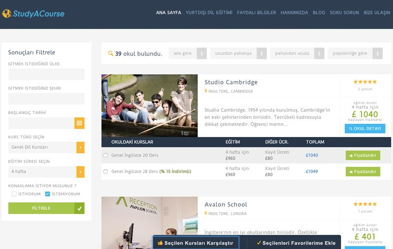 Oldukça yeni bir girişim olan StudyACourse, İngiltere’den Amerika’ya, Avusturalya’dan Almanya’ya bir çok ülkedeki eğitim fırsatlarını keşfetmenizi sağlayan bir platform. Üstelik sadece dil eğitimlerini değil lisans, yüksek lisans gibi çeşitli özel eğitim imkanlarını da listeliyor. Şimdilik eğitim kurumlarından belli bir komisyon oranı alan StudyACourse, önümüzdeki dönemde konaklama seçenekleri, vize ve çalışma imkanlarını siteye dahil ederek gelir kanallarını artırmayı hedefliyor.