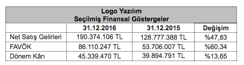Türkiye'de şirket ve uygulama yazılımları alanında borsaya açılma başarısı gösteren sayılı şirketlerden biri olan Logo Yazılım, 2016 yılın finansal rakamlarını açıkladı.