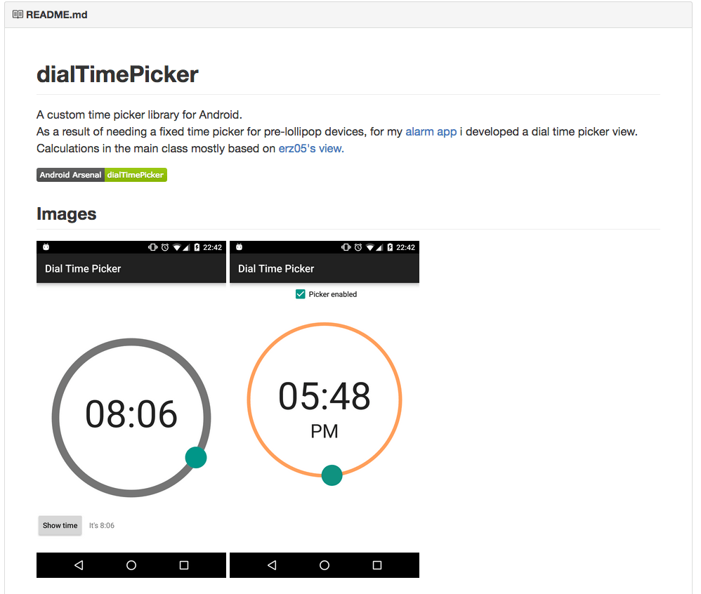Android'in varsayılan olarak gelen ve çoğu uygulama tarafından kullanılan saat seçicisini beğenmeyip özelleştirmek isteyen geliştiricileri hedefleyen kütüphane Uğur Tekbaş tarafından geliştirilmiş.