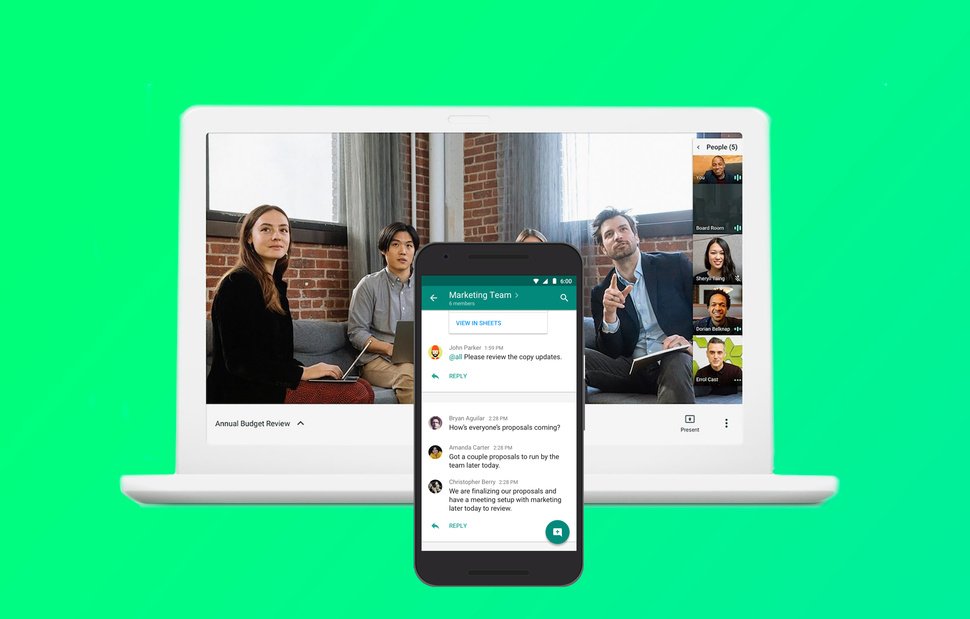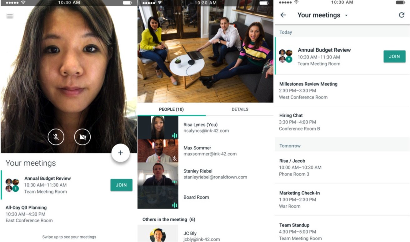Allo ve Duo uygulamalarının kullanıma sunulmasının ardından Hangouts'ı günlük kullanım için değil de kurumsal kullanım için bir platform haline getirmeye çalışan Google, Hangouts Meet servisiyle Skype for Business'ı, Chat servisiyleyse Slack uygulamasını hedef almış.