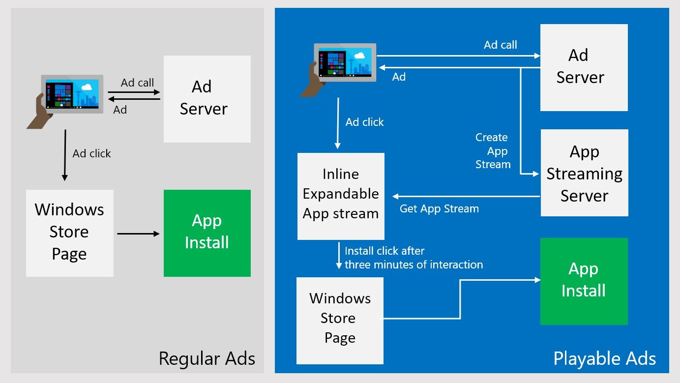 Windows 10, uygulamaları mağazadan indirmeden denemenize olanak sağlayan oynanabilir reklamlar (Playable Ads) özelliğine kavuşuyor. Adından da anlaşılabileceği üzere aslında uygulamalar için bir reklam modeli olacak olan bu özelliği daha önce Android platformunda Instant Apps olarak görmüştük.